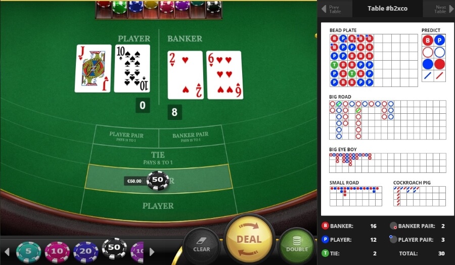Multiple Roadmaps, Choice of Tables, Player/Banker Pair Side Bets |